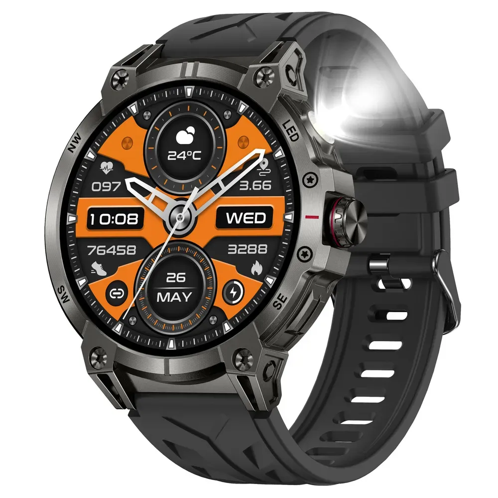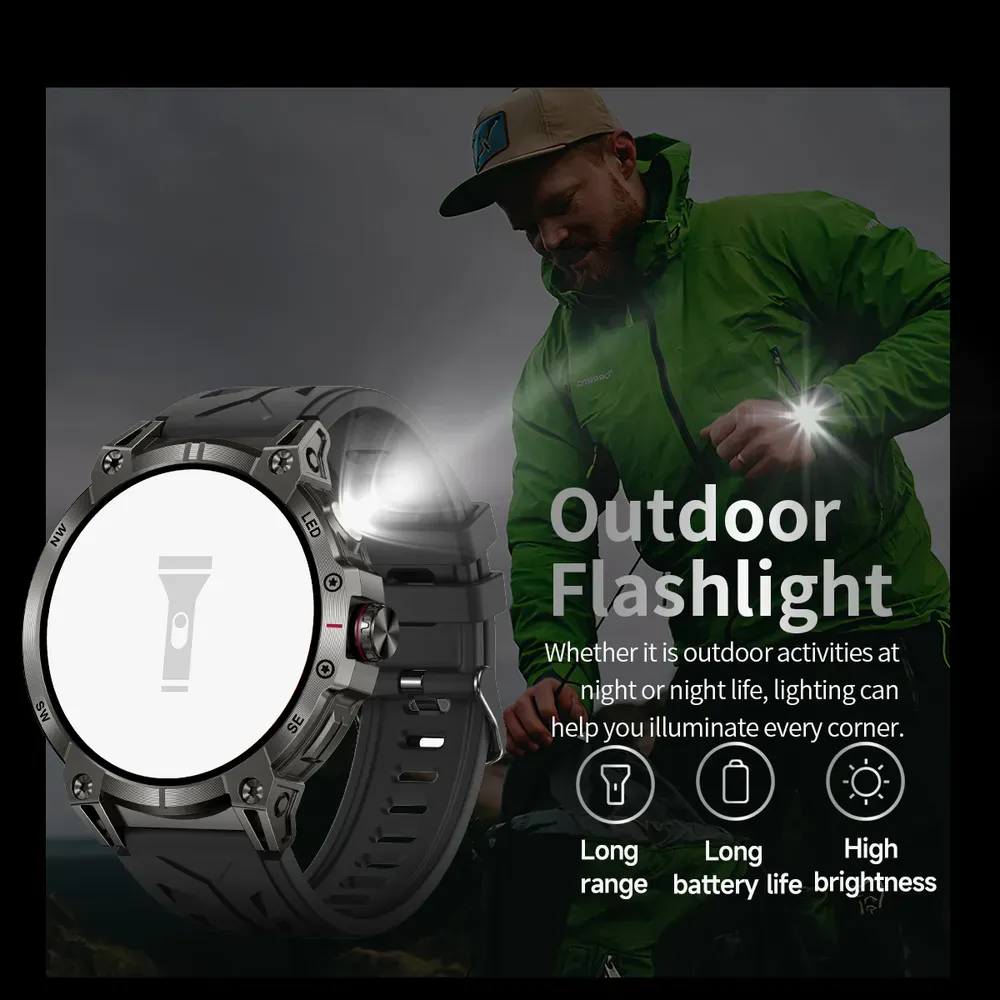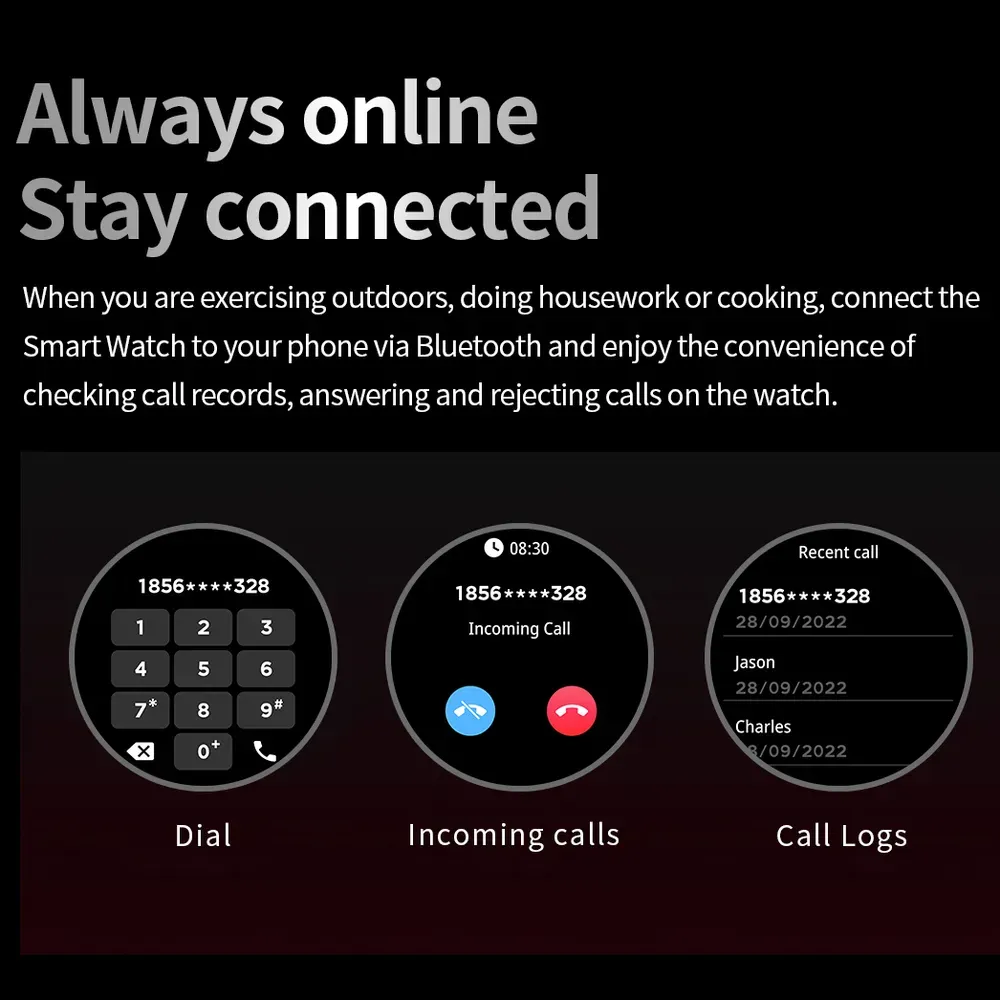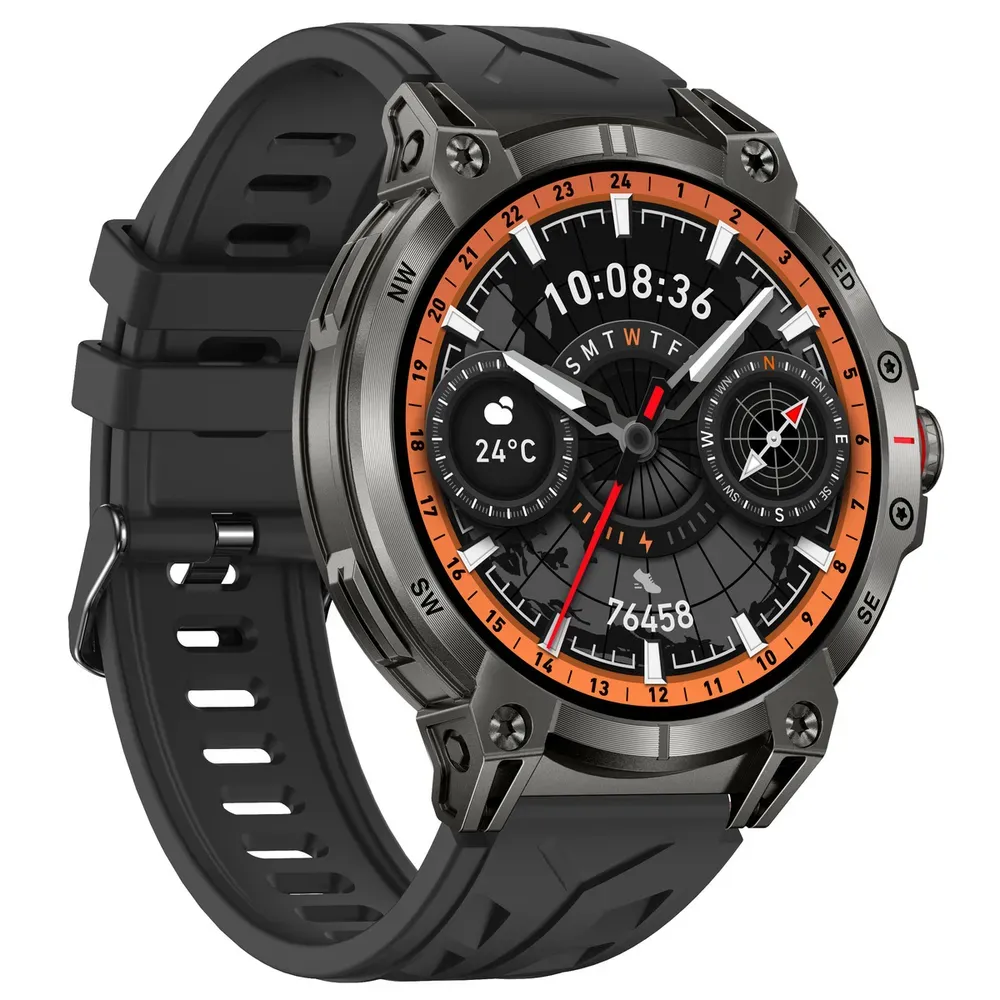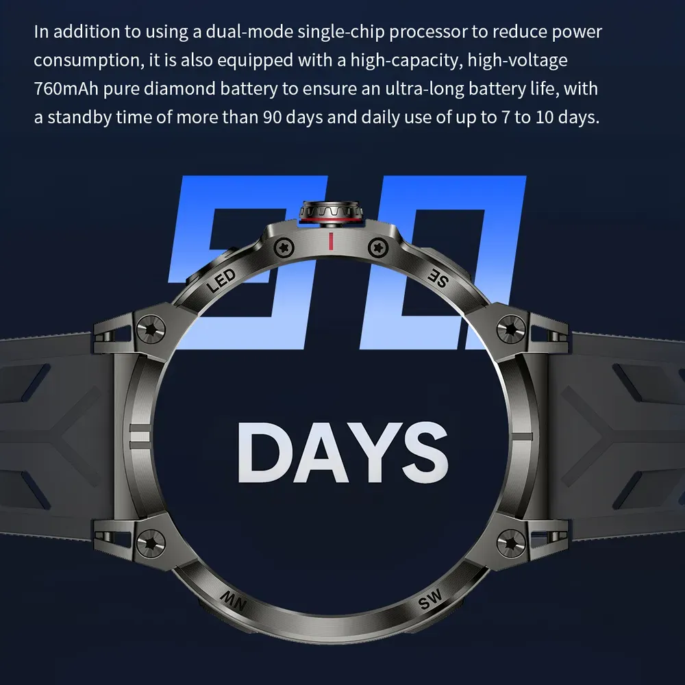 Особливості:Компас; Будильник; Секундомір; Вимірювання пульсу/тиску/кисню в крові; Режим бігу, тренажерного залу та спортивних ігор (100+ спортивних режимів); Функція "Розумний сон+"; Відображення погоди; AI помічник; Дистанційне керування камерою; Керування програвачем телефону; Ліхтарик; Потужна батарея; Безліч циферблатів на вибір; Ударостійкий корпус; Калорії, тривалість вправ, темп, відстань.