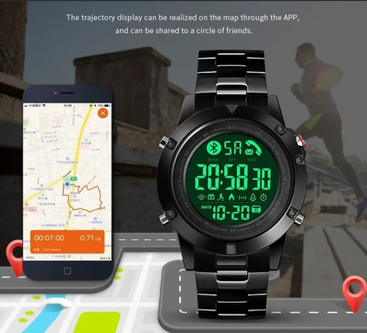 Особливості:Оповіщення про пропущені дзвінки на телефоні. оповіщення з додатків. управління камерою телефону. фітнес - трекер. крокомір. секундомір. будильник. підсвічування. дата. день тижня. місяць