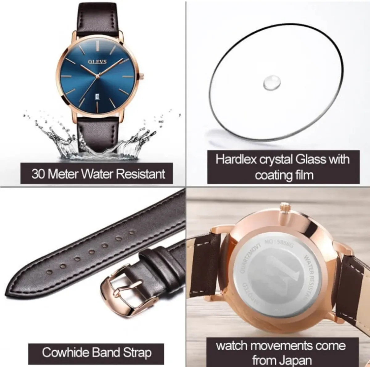 В комплекті йде: 2 годинники (чоловічий та жіночий), а також подарункова коробочка.
