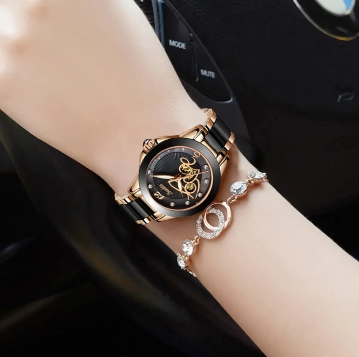 Колір ремінця/браслета:Чорний з золотистими вставками