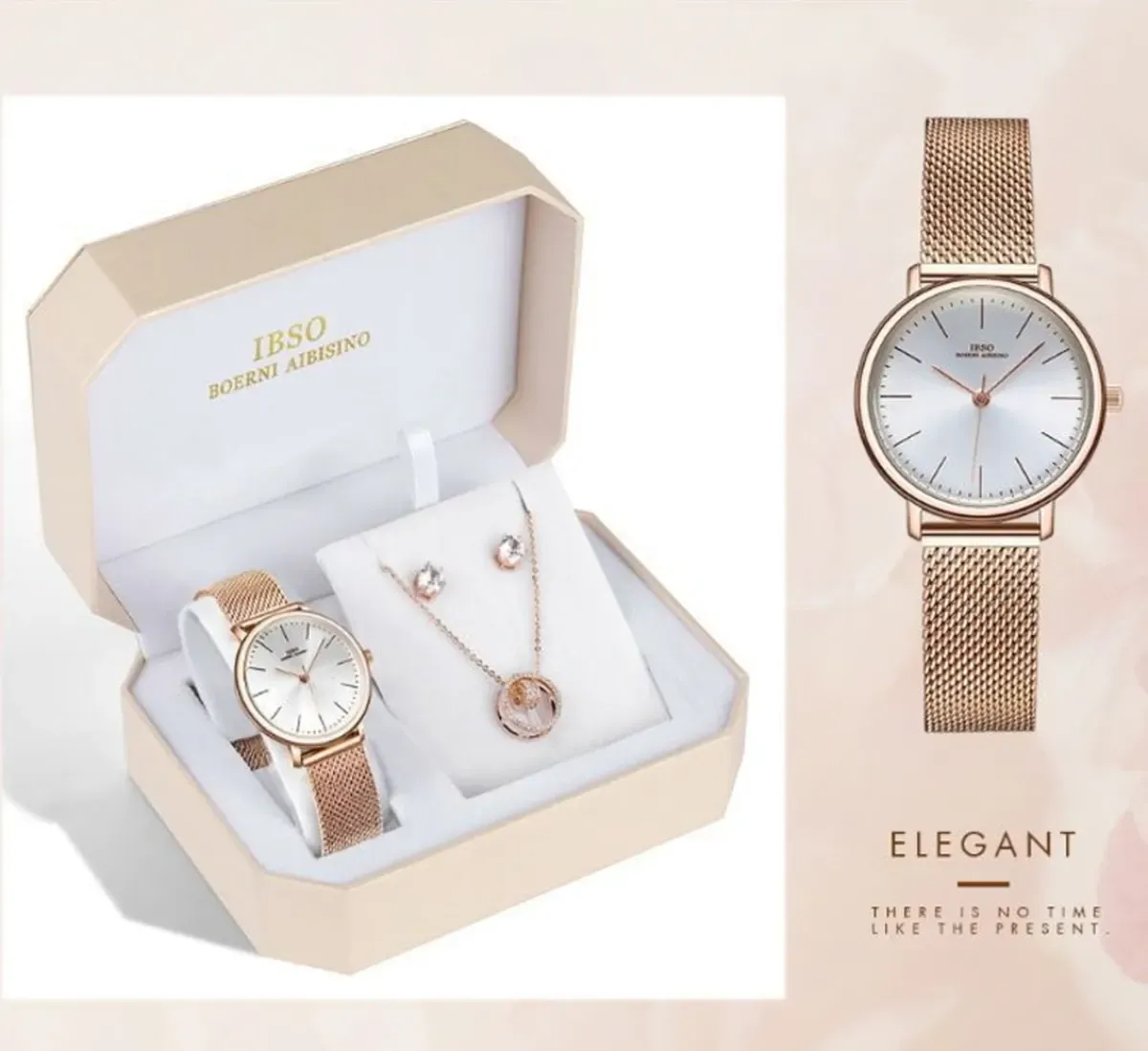 Baosaili BOX - ексклюзивний подарунковий набір для дівчини. В комплект входять витончений годинник Baosaili, сережки і ланцюжок з кулоном. Всі три аксесуари поєднуються разом у вишуканий образ й доповнюють один одного. Набір йде з безкоштовною подарунковою коробочкою та ідеально підійде на подарунок для найближчих.