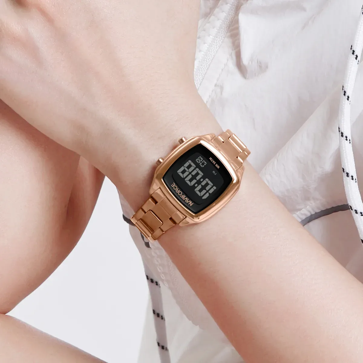 Бренд Naviforce спеціалізується на створенні годинників, які не тільки вражають своїм стильним дизайном, але й відповідають високим стандартам довговічності та захисту. Дана модель розроблена спеціально для спортивних жінок і дівчат. Вона має підсвітку, будильник, секундомір та захист від води.