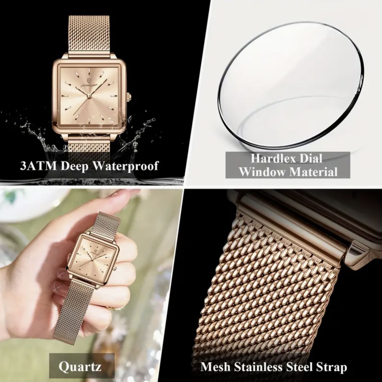Якісні матеріали: нержавіюча сталь, міцне мінеральне скло, надійні кварцові механізми.