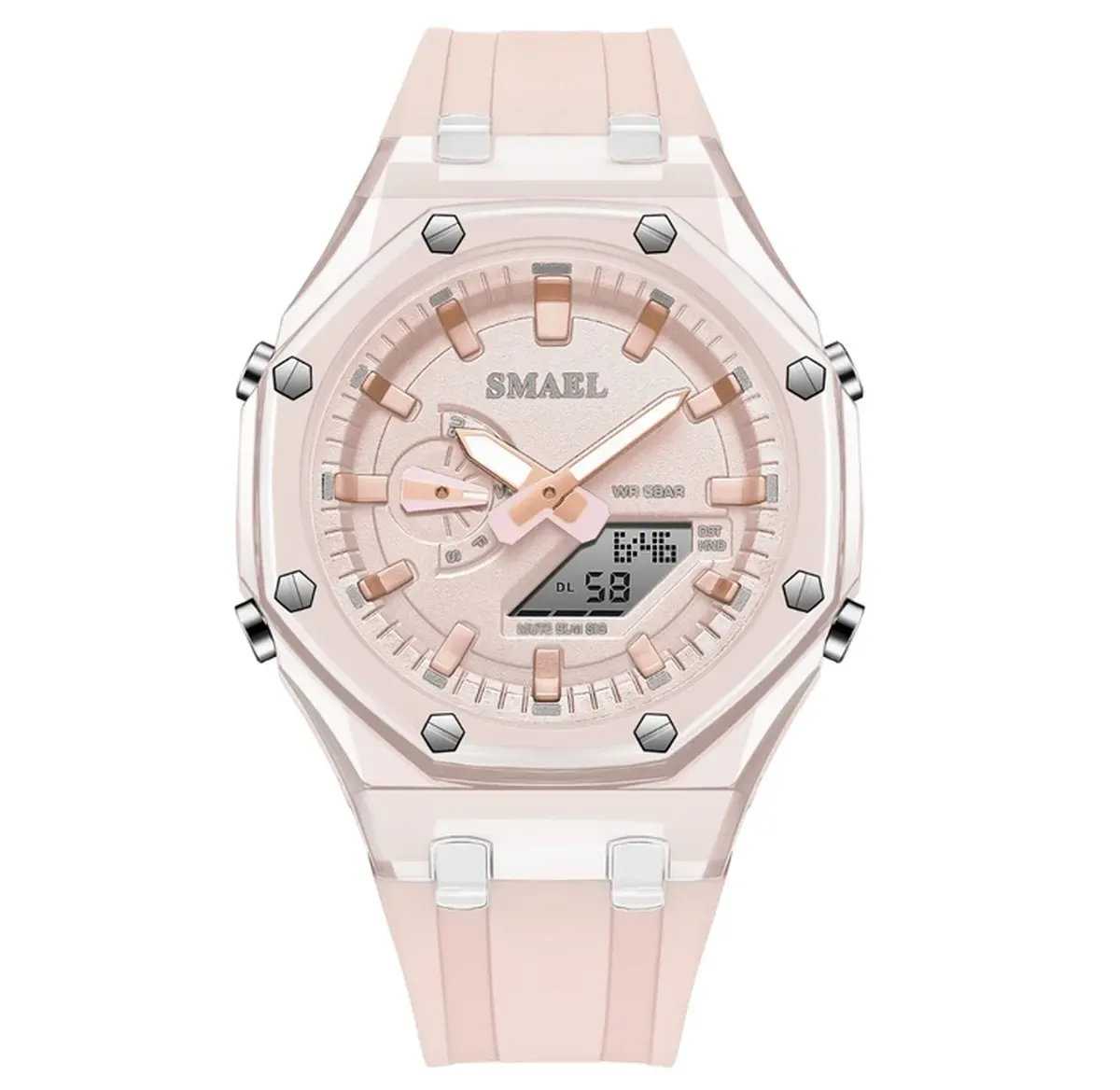 Smael - це бренд спортивних годинників високої якості. Ці годинники розроблені спеціально для прекрасної половини статі та відрізняються стильним дизайном, надійним механізмом й високою стійкістю до води.