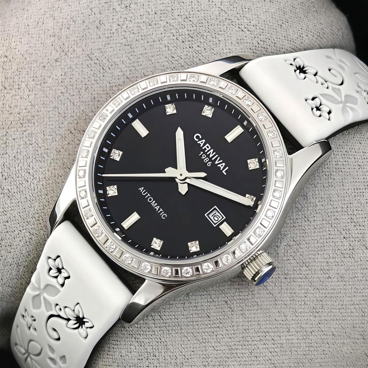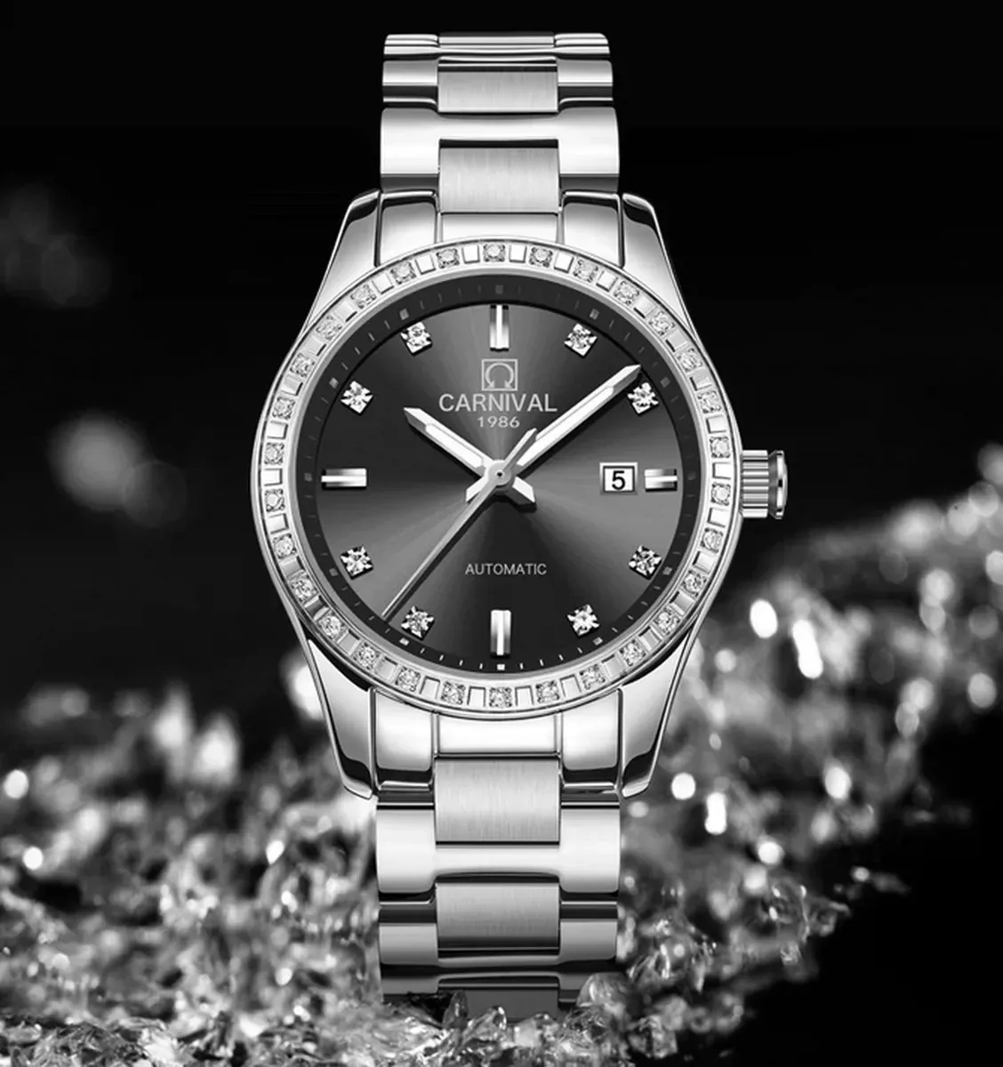 Жіночі механічні годинники Carnival – це втілення престижу та надійності у кожній деталі. Оснащені високоточним японським механізмом із 25 каменями, вони забезпечують стабільну та довговічну роботу. Завдяки сапфіровому склу годинник стійкий до подряпин і зберігає бездоганний вигляд протягом багатьох років.